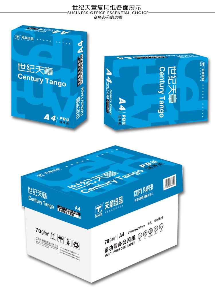 基本信息商品名:天章(TANGO) 世紀天章 70克A4復(fù)印紙 500張/包 5包/箱商品描述全純木漿,挺度好,不卡紙,中性靜電復(fù)印紙,保存期長 ※/通過SGS檢查的信息紙品 ※未檢測到鉛、汞、鎘六價鉻等重金屬有害物質(zhì),健康環(huán)保,信任選擇